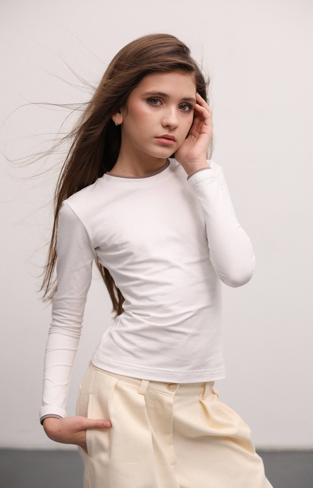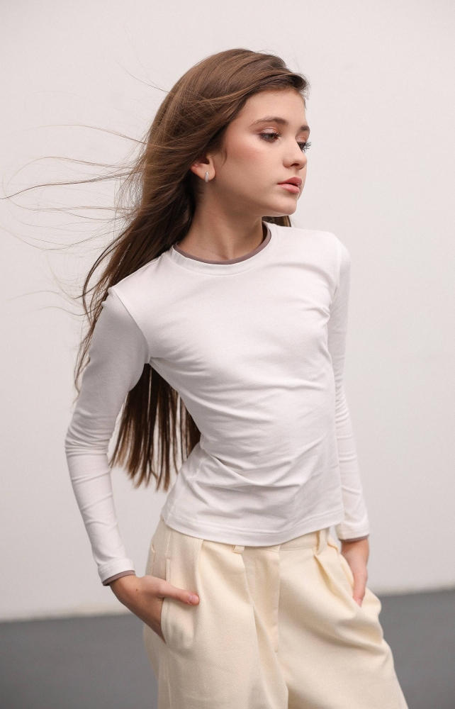 Трикотажний лонгслів - базова база гардеробу кожної дівчинки. Приталений силует, щільна тканина, контрастний кант на горловині та по низу рукава.