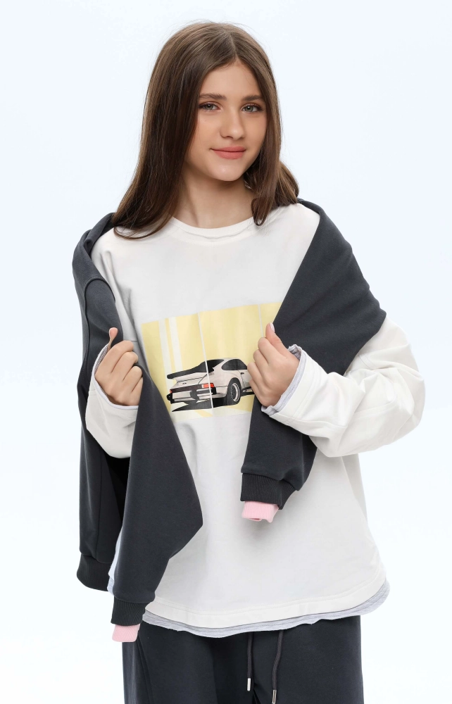Лонгслів подовжений молочний жовте авто
