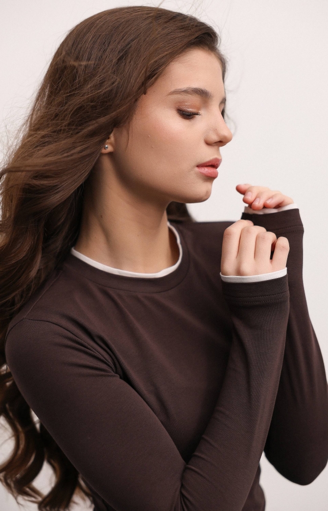 Трикотажний лонгслів - базова база гардеробу кожної дівчинки. Приталений силует, щільна тканина, контрастний кант на горловині та по низу рукава.