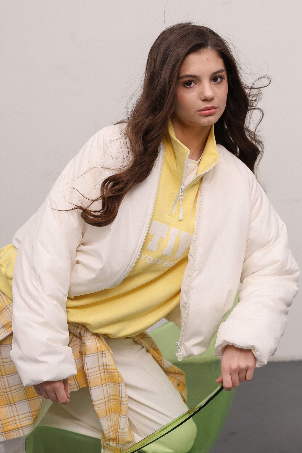 Бомбер короткий утеплений молочний