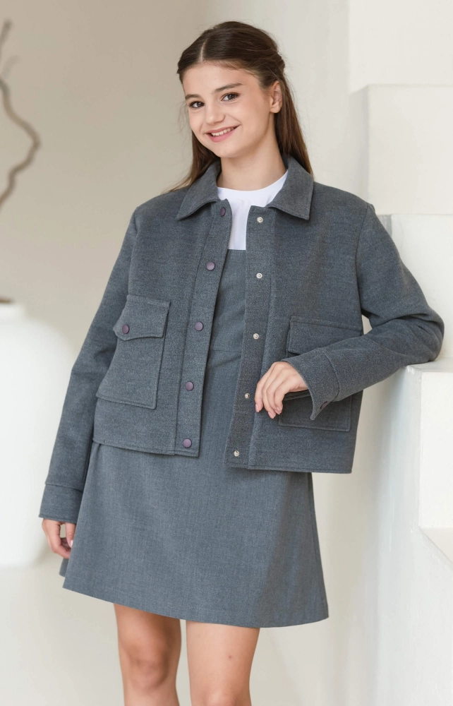Теплий короткий жакет з пальтової тканини на віскозній підкладці. На кнопках. Ідеально комбінується з рештою речей з шкільної колекції PaMaranchi.