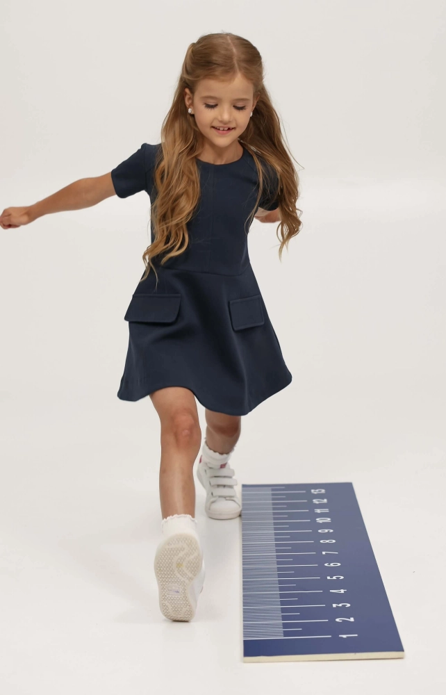 Приталена шкільна сукня в довжині міні. Виконана з преміального двостороннього трикотажу, у складі якого 100% бавовна. Силует сукні підкреслений рельєфами на ліфі та формою спіднички. На спинці довга блискавка, аби сукню було зручно одягати.