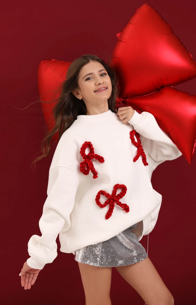 Світшот різдвяний молочний з червоними бантами