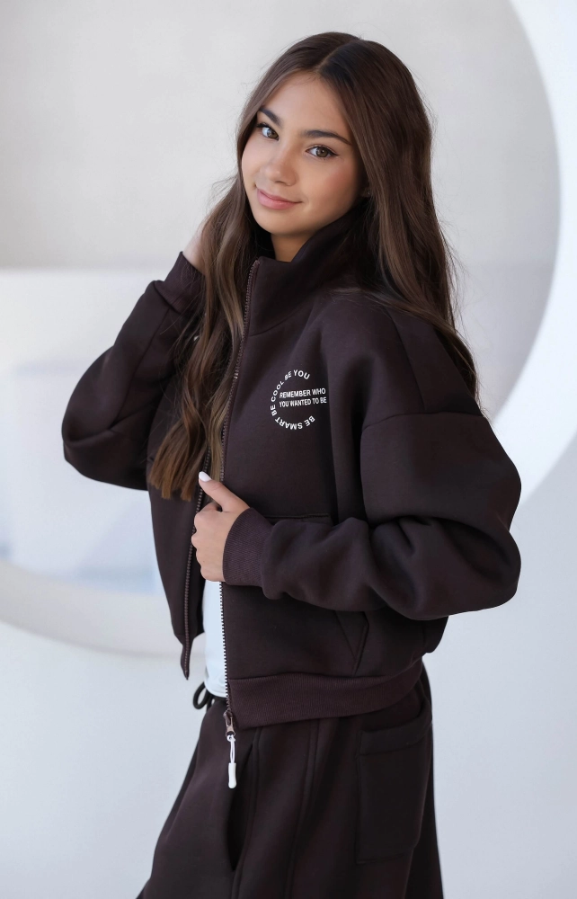 Кофта зіп з коміром-стійкою тепла шоколадна