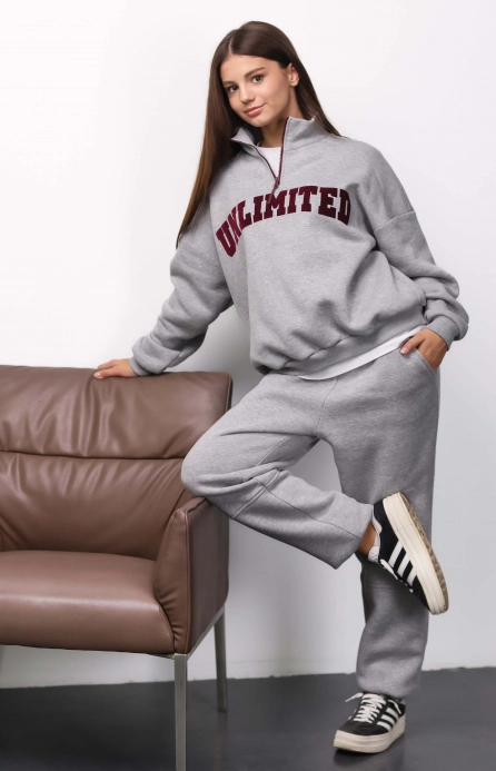 Трикотажні утеплені штани вільного крою. Для комфортної посадки по фігурі на талії широка цупка резинка та шнурок, яким можна додатково регулювати пояс. З боків кишені.