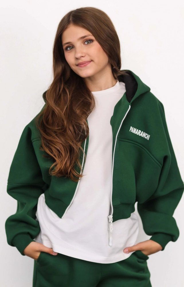 Коротке худі зіп утеплене зелене