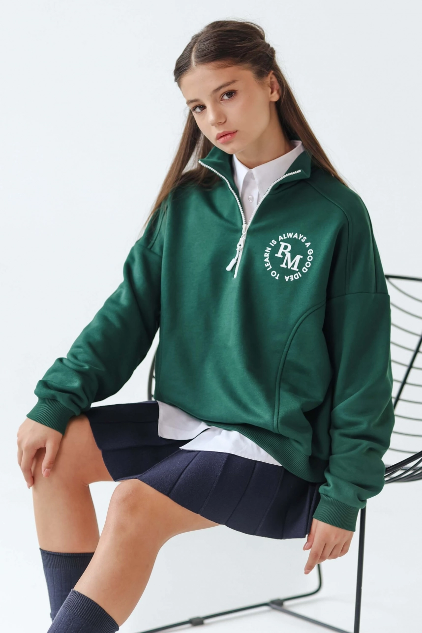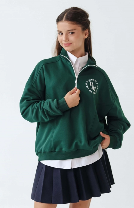 Світшот шкільний на блискавці зелений