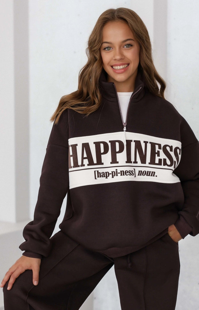 Світшот теплий з блискавкою Happiness шоколадний