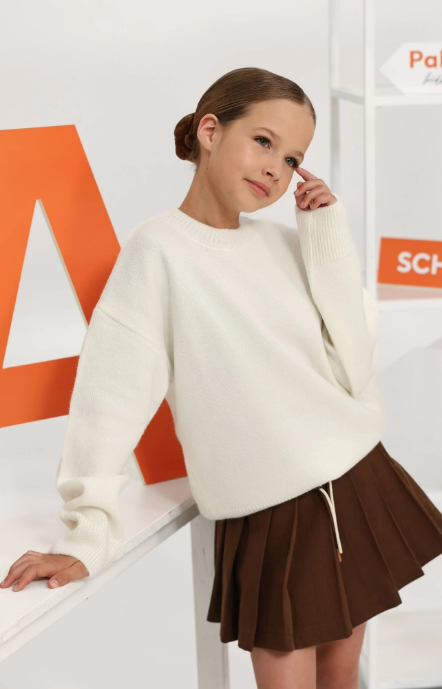 Светр вʼязаний об'ємний з круглою горловиною молочний