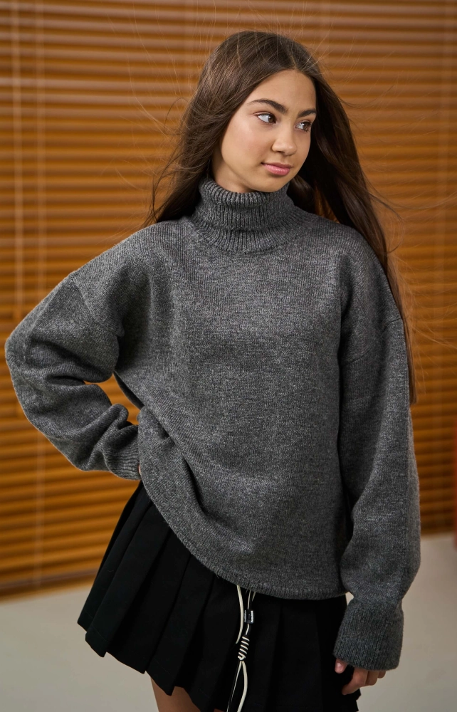 Светр вʼязаний з високим коміром сірий